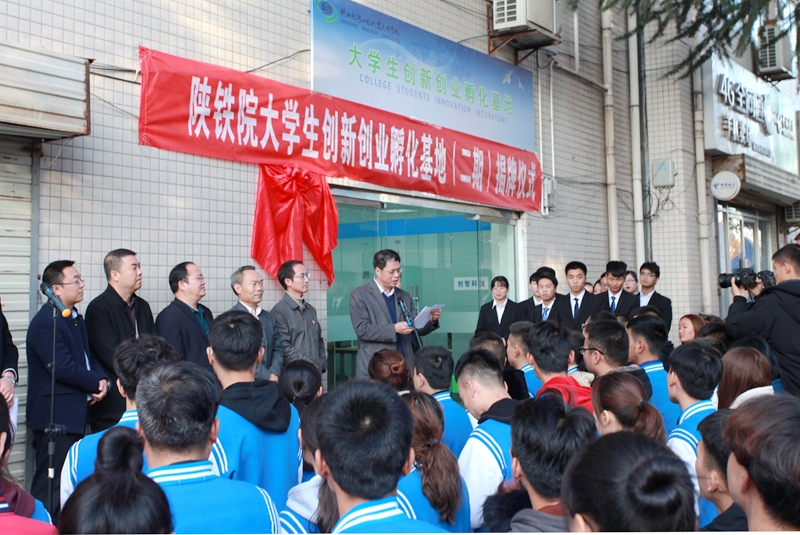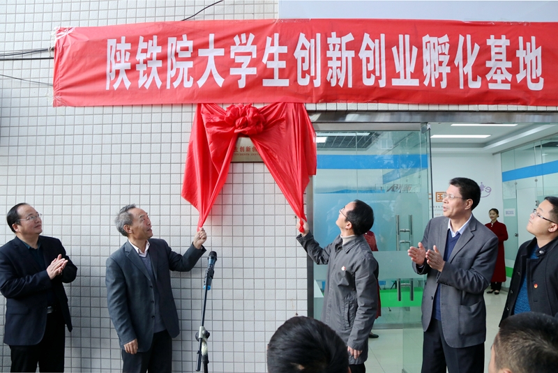 车绪武、张晓峰共同为“陕西铁路工程职业技术学院大学生创新创业孵化基地”揭牌。临渭校区孵化基地的落成是学院继高新校区孵化基地成功运行两年后,为全院青年学生参与“大众创业,万众创新”而建立的又一新的平台,经学生团队申请、答辩评审,最终确定斑马摄影、BIG DOG、创智科技等3个项目入驻临渭校区孵化基地。