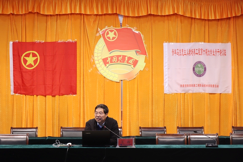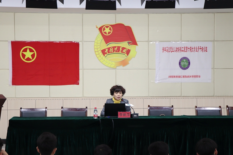 教育部高等学校思想政治理论课教学指导委员会委员、学院思想政治理论教学科研部主任李新萍为“青马工程”第六期大学生骨干培训班授旗,团委副书记侯峰对此次培训工作做了安排说明,盾构3178班卫玉龙同学也代表全体学员表达了珍惜机会、努力提升的信心和决心。