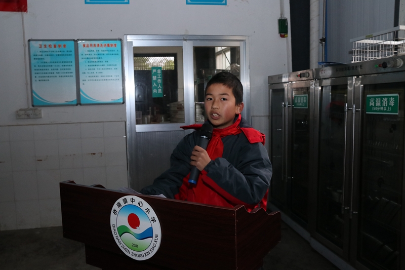 桥南镇中心小学校长杨龙飞在感谢词中讲到,对学院捐赠校服的善举表示感谢,他表示桥南镇中心小学的各位老师会请记住这个感人的时刻,他们会竭诚尽职、聚力凝心,把桥南教育办成一所让社会满意、让家长放心、让学生全面发展的学校。同时,他要求同学们要把恩情化作自强不息、奋发学习的动力,化作克服困难、知难而进的勇气,用优异的成绩报答父母的养育之恩,不辜负社会各界对自己的殷切希望。