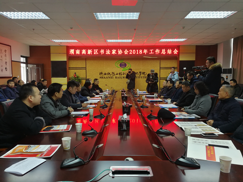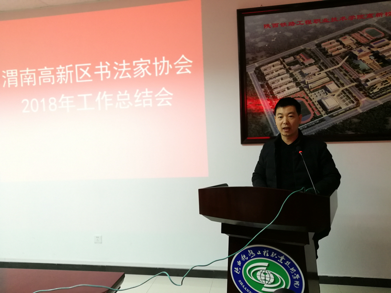 1月12日上午,渭南高新区书法家协会在学院高新校区召开2018年度工作总结大会。省书法家协会副主席、渭南市书法家协会主席薛小虎,高新区党群工作部副部长王芳伦,高新区社会事业局局长张荣军,高新区书法家协会主席陈龙出席会议。高新书协40余名会员代表参加会议。