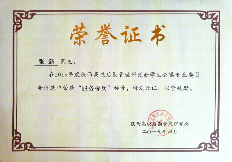 学生处张磊同志获“陕西高校学生公寓服务标兵”称号