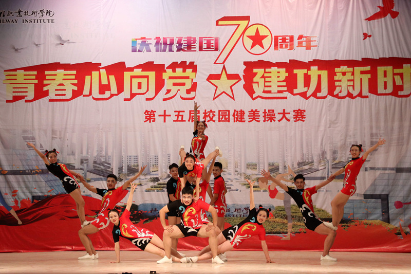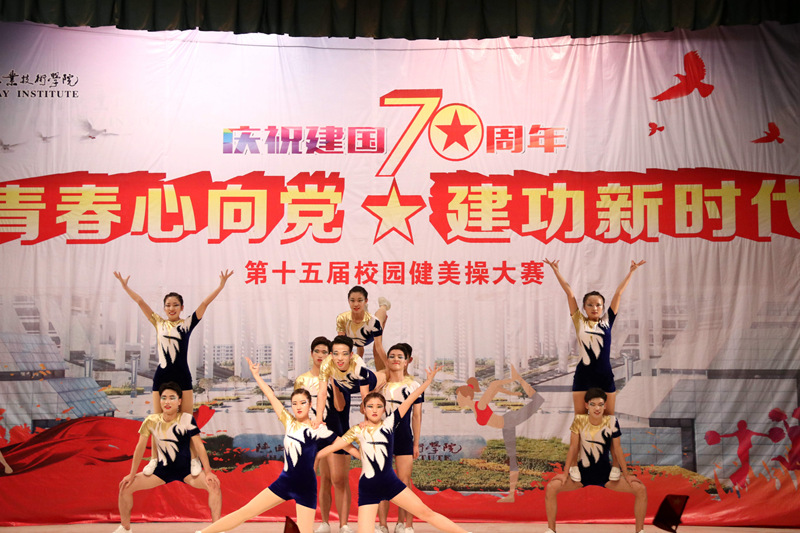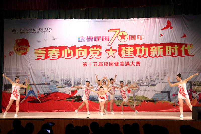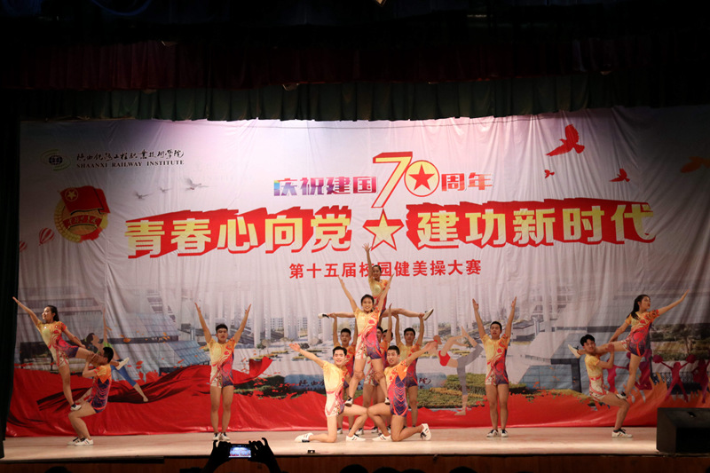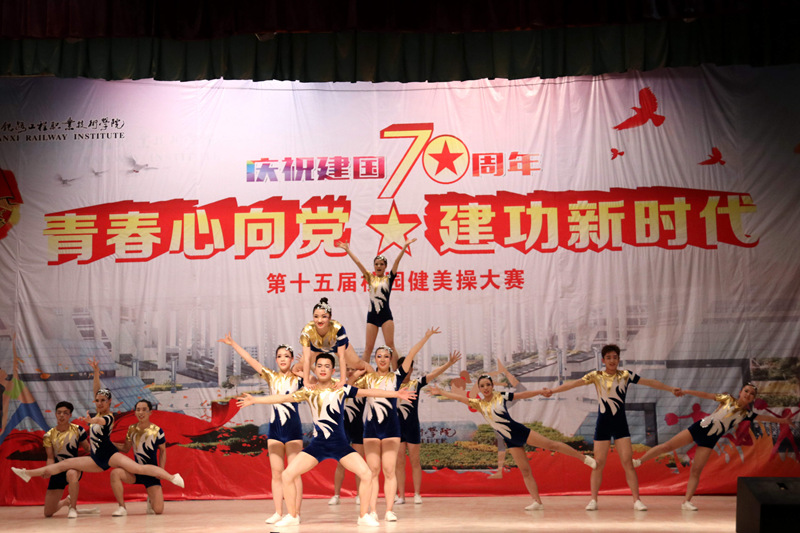 为庆祝新中国成立70周年,4月16日、17日晚,学院分别在高新、临渭两校区文体中心举行了“青春心向党 建功新时代”的第十五届校园健美操大赛。