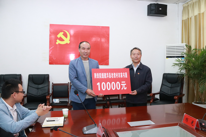 会议期间,杨妮娜汇报了2017年以来陕铁院在洋县开展帮扶工作情况,充分肯定了学院在洋县倾情倾心开展帮扶工作取得的显著成绩。车绪武从整体思路、组织机构、帮扶任务、主要措施、工作要求等五个方面介绍了陕铁院结对帮扶洋县2019年脱贫攻坚工作实施方案。喇永斌对陕铁院来洋县开展结对帮扶工作表示感谢和欢迎,希望双方加强沟通交流,不断提升帮扶成效。会议现场,学院向洋县城南学校捐赠15万元用于建设智慧教室,向龙亭镇老君村捐赠1万元用于建设农家书屋。