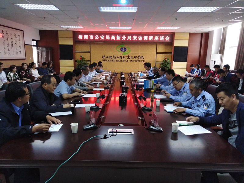 5月16日上午,渭南市公安局高新分局副政委李彩玉、高新分局国保大队长郭夏、高新区白杨派出所教导员杨超利一行六人到学院就校园风险防范与化解相关工作进行调研座谈。学院党委副书记车绪武,学院安保处、学生处、思政部、高新四系相关负责人和辅导员、班主任、学生代表共计29人参加了调研座谈。调研座谈会由学院安保处处长李晓飞主持。