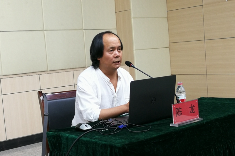 陈龙讲座主题是“敬畏先贤与古为徒——中国书法艺术精神内涵”。他以汉字发展为脉络,依托各时期代表性书家和存世法帖,从思想层面、技法层面深入浅出得为大家做了详细解读,他强调:“要想练好字,必先做好人,人品不高,落墨无法,练字和学问必须俱进”。