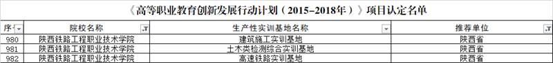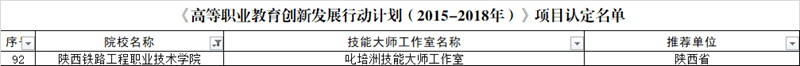 近日,教育部公布了《高等职业教育创新发展行动计划(2015—2018年)》项目认定结果,学院优质专科高等职业院校、骨干专业、生产性实训基地、“双师型”教师培养基地、应用技术协同创新中心、技能大师工作室等17个项目通过教育部认定,认定项目数位居陕西第三。