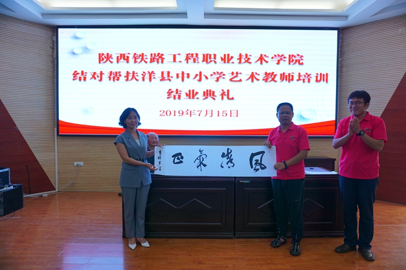 7月14日上午,学院结对帮扶洋县中小学艺术教师培训班开班仪式在洋县南街小学开班。洋县教体局副局长张晓民、洋县教师进修学校校长王元新,洋县教体局扶贫办主任刘龙新,学院艺术教育中心主任侯峰出席会议,学院艺术教育中心7名教师及洋县中小学120余名艺术教师参加开班仪式。