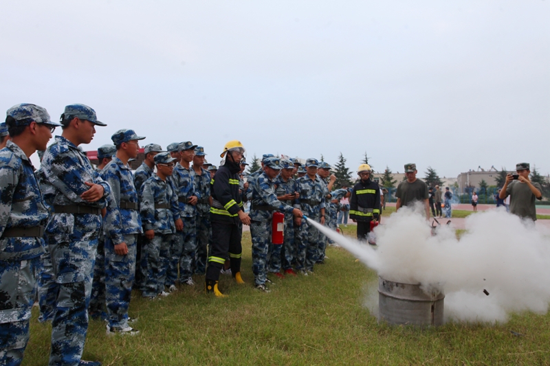 “火海逃生”之后,临渭消防大队工程师张涛针对演练环节作了精彩的讲评并向现场广大师生讲解了灭火器的使用方法和操作步骤,随后新生代表手提干粉灭火器进行了灭火体验。