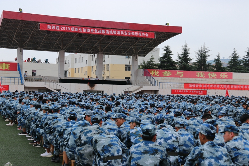 ——举行2019级新生消防疏散演练暨消防知识报告会。该活动于9月12日下午在学院临渭校区田径场举行。学院党委书记王晖、党委副书记车绪武,安保处、学生处、院团委、临渭校区四系党总支书记、2019级辅导员、班主任及两千余名新生参加了此次活动。渭南市消防支队和站南派出所有关领导应邀出席了活动。
