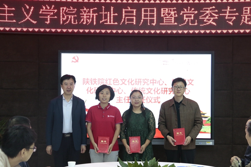 会上,王津宣读了党委对研究中心主任的任命纪要。随后,王晖为学院红色文化研究中心、铁路文化研究中心、传统文化研究中心的主任孟红松、曹喜龙、李崇智颁发聘书。王津为马克思主义学院政治理论教研室、思想品德教研室、形势政策教研室主任孟红松、李莉、刘娜颁发聘书。