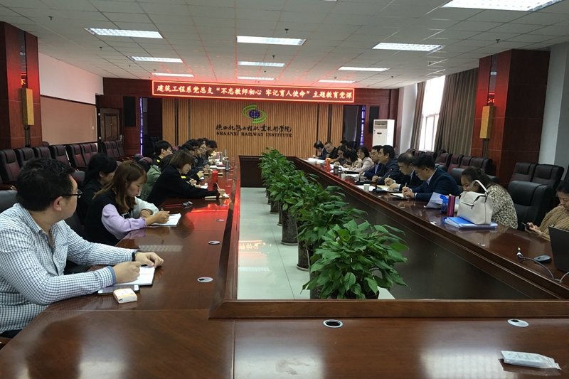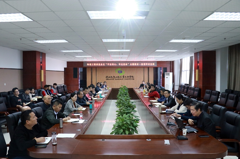 为推进“不忘初心、牢记使命”主题教育工作,10月30日下午,轨道工程系党总支于行政楼A2楼会议室召开了“不忘初心、牢记使命”主题教育——“院领导讲党课”教师党员学习大会。学院党委副书记焦胜军为全体党员教师做讲解,轨道系党总支书记姜留涛、轨道系主任毛红梅及轨道工程系全体全体党员教师聆参加了学习大会。