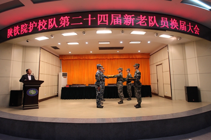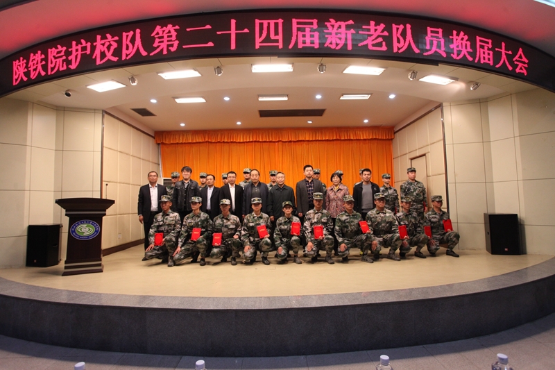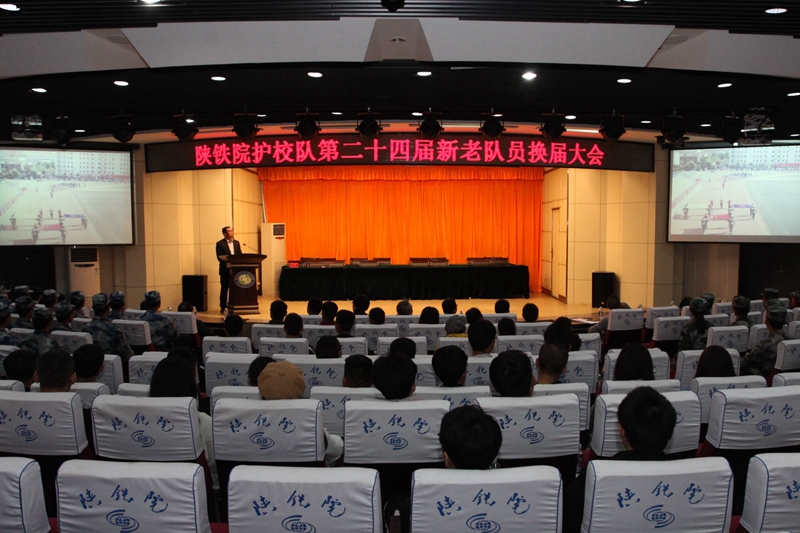 10月30日下午,陕铁院第二十四届护校队换届大会在学院临渭校区学术报告厅举行。学院党委副书记车绪武,学生处、院团委、安保处负责人,临渭校区各系党总支书记、学生社团负责人和护校队员共计两百余人参加。