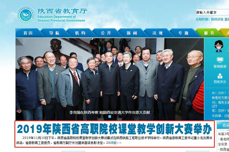 2019年11月11日,陕西省教育厅网站头条对学院承办的2019年陕西省高职院校课堂教学创新大赛进行了报道。现将全文转载如下: