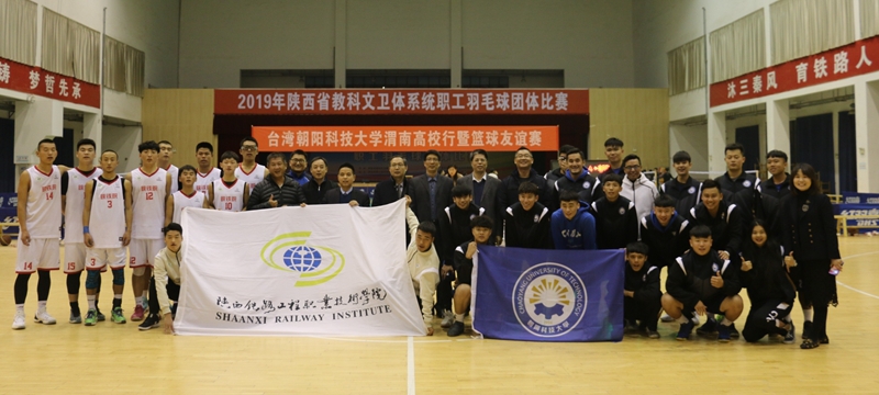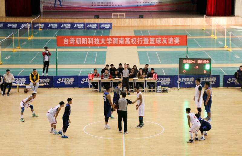 下午,台湾高校学子渭南高校暨篮球友谊赛开幕式在高新校区文体中心举行。渭南市台办、渭南师范学院、渭南职业技术学院、学院体育部、港澳台工作办公室等相关负责人出席开幕式。首场比赛是陕铁院对朝阳科技大学,球赛开始,双方运动员的登场把全场气氛点燃到最高点,赛队之间互相握手致意,交换纪念品,接着,哨声一响起,全场沸腾。比赛正式开始,双方队员激情高涨,你争我夺,展开了一轮轮的攻防大战。双方球员互相比拼,互不相让,为场上比赛制造出紧张刺激的气氛。同时,场下观众热情高涨,为场上运动员呐喊助威,比赛精彩非常。