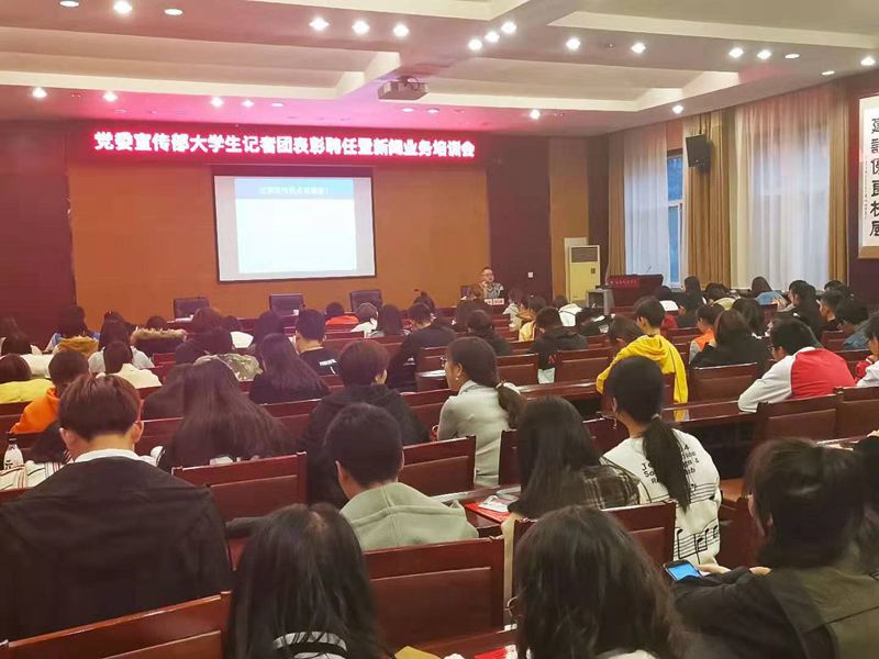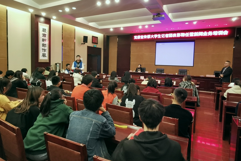 11月20日下午,西安文理学院党委宣传部在该校办公楼一层会议室举办大学生记者团表彰聘任暨新闻业务培训会,学院党委宣传部副部长张玉鹏同志、新媒体负责老师王凯及铁小匠网络文化工作室学生骨干张雄伟、崔佳乐受邀参加会议并交流宣传工作。会议由该校党委宣传部副部长曹贤姿主持。