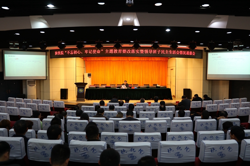 12月11日下午,陕铁院在临渭校区学术报告厅召开“不忘初心、牢记使命”主题教育整改落实暨领导班子专题民主生活会,委厅主题教育第二巡回组成员常玢超、学院党委委员、纪委委员、工会委员、学术委员会委员以及全体处职干部参加了会议,会议由党委书记王晖主持。