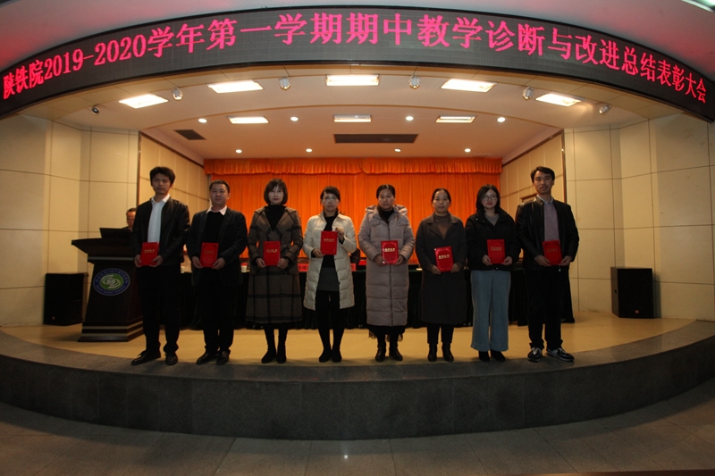 王闯宣读了《关于表彰学院2019-2020学年第一学期期中教学诊断与改进优秀项目的决定》和《关于表彰2019年招生工作先进部门和先进个人的决定》文件,与会领导分别为优秀部门和个人进行颁奖。