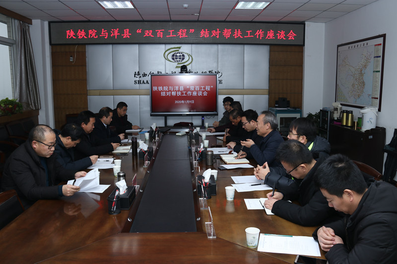 1月9日上午,学院与洋县“双百工程”结对帮扶工作座谈会在临渭校区十一楼会议室召开。学院党委副书记车绪武,洋县教体局副局长张晓民一行4人,学院党委(院长)办公室、宣传部、工会、教务处、团委、餐饮中心、后勤保障处、扶贫办等部门相关负责人参加座谈会。会议由党委(院长)办公室主任、宣传部长、扶贫办公室主任祝和意主持。