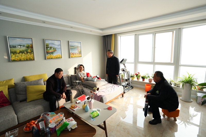 唐煜弢一行走访慰问了陕西省“三秦工匠”叱培洲和正在康复中的学院教师屈克林。唐煜弢转达了省教科文卫体工会对叱培洲和屈克林老师和问候,并为他们送上慰问信和慰问金。并勉励叱培洲老师发挥好“工秦工匠”的作用,大力开展师带徒活动,培养更多的优秀工匠人才,同时祝福屈克林老师早日康复。王晖书记详细询问了屈老师的病情、治疗情况,希望屈老师安心休养,早日康复,并代表院党委为屈克林老师送上慰问金。