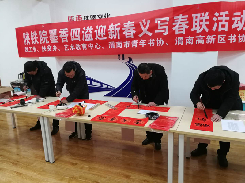 在春节即将到来之际,为了让全院师生感受到中国传统春节文化,丰富他们文化生活,助力临渭区脱贫攻坚,学院分别在临渭和高新两校区、临渭区故市镇渭阳学校开展了“义写春联送温暖 墨香四溢迎新春”的文化帮扶活动。