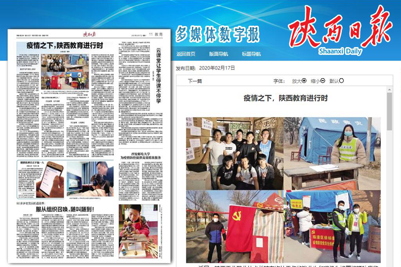 2020年2月17日,《陕西日报》第11版(教育版)以“疫情之下,陕西教育进行时”为题报道了陕西省各高校通过各种形式为疫情防控作贡献,其中对学院在抗击疫情中的心理援助举措进行了大篇幅报道。现将原文转载如下,欢迎各位老师浏览: