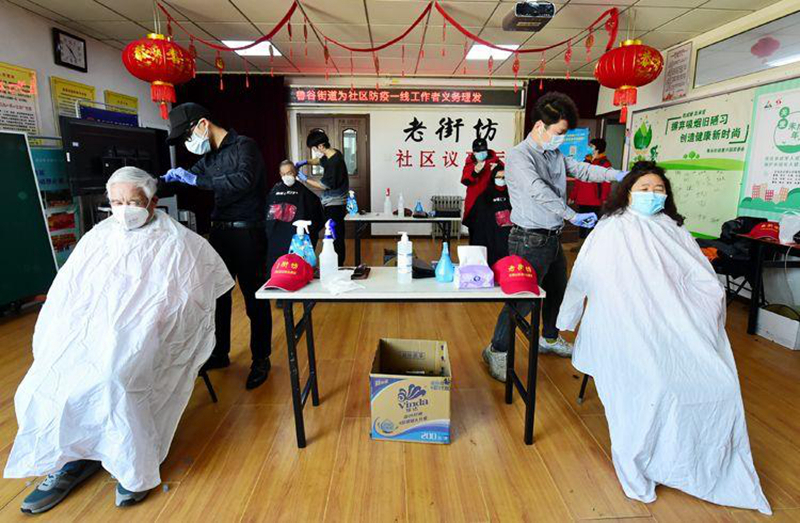 测量3195团支部团员为村民义务理发