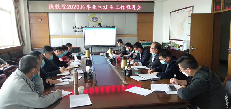 4月15日下午,陕铁院2020届毕业生就业工作推进会在临渭校区11楼会议室召开,学院副院长蒋平江,就业指导中心全体人员、各系部书记、学工办主任和毕业班辅导员老师参会,就业指导中心主任王庆东主持会议。