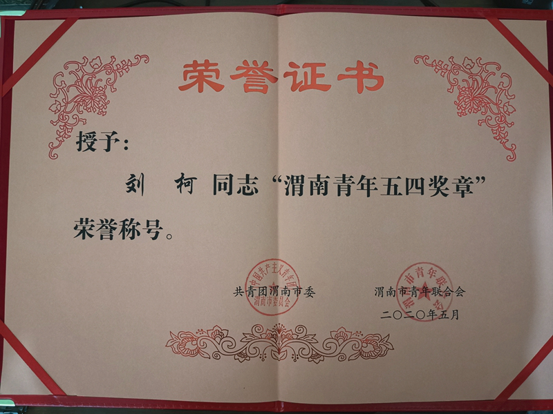 刘柯获得“渭南青年五四奖章”并作为代表发言