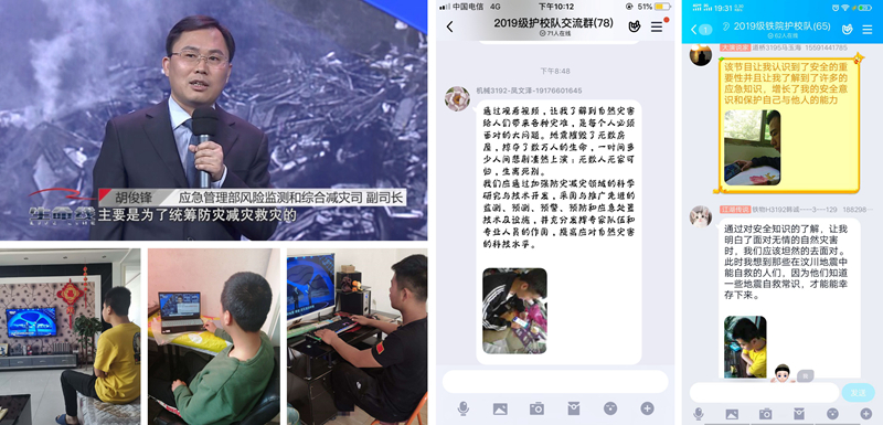 ——收看“5.12全国防灾减灾日特别节目”。5月10日,学校组织学生在线收看应急管理部与中央视台联合推出的“5·12全国防灾减灾日特别节目——《生命线》”,同学们认真观看视频后发表了观后感。道桥3195班马玉海说:“通过观看《生命线》,让我知道了5.12特大地震之后的12年里,特别是2018年国家组建应急管理部以来,我国为防灾减灾都做了什么、发生了什么样的变化、设立全国防灾减灾日的初衷以及防灾减灾的重大意义。”铁成建信3182班张梦媛深有感触地说:“《生命线》节目,让我明白了:自然灾害的发生是难以避免的,我们要学会与灾害共处。平日里还要主动自觉地学习各类防灾减灾知识,掌握一些科学的自救互救技能,尽最大可能让灾害来临的时候,让我们自己变得更安全。”