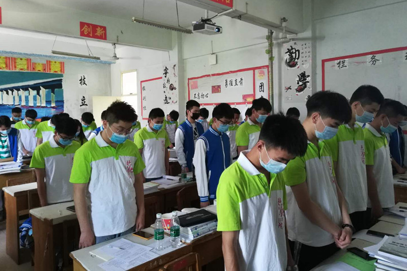 学生为新冠肺炎疫情牺牲的烈士和逝世同胞默哀