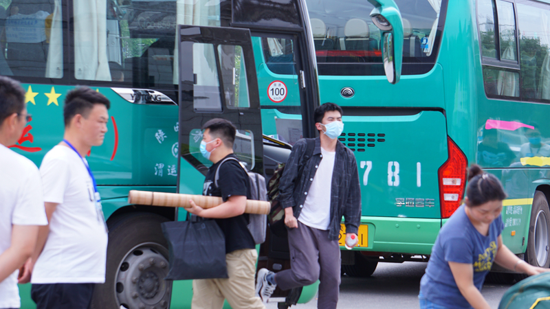学校专门安排大巴车接站,为学生健康保驾护航