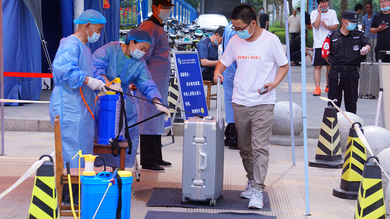 为做好学生分批返学工作,学校专门召开了学生返校工作布置会,明确防控要求,压实各部门防控责任,在总结了大二大三学生返校经验的基础上,细化常态化防控措施,加固薄弱环节,补上短板漏洞,坚持把师生安全和身体健康放在第一位,统筹推进疫情防控和教育教学。同时,各部门各学院分工协作、密切配合,规范流程,落实责任,高温天气里依然坚守在学生返校工作一线,严格按照学校疫情防控相关要求,为学生提供必要帮助,做到精准防控、守护安全,用扎实细致热情的工作筑起学生入校的第一道防线。