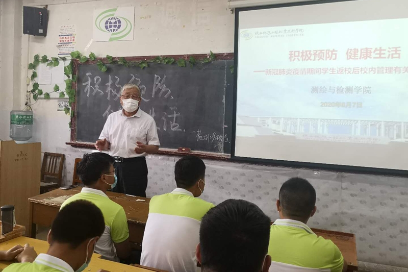 学校党委副书记、纪委书记杨云峰教授走进测绘与检测学院检测3191班,为全体学生召开复学第一课《积极预防、健康生活——新冠肺炎疫情期间学生返校后校内管理有关事项说明》主题班会。他从晨午检要求、个人卫生规范、教室和宿舍消毒规定、学生就餐指南、防疫纪律、中西方战疫对比、读懂“四个自信”等七个方面,为同学们详细讲解了疫情期间校园生活和学习的有关事宜,要求同学们遵守防疫规定,听从老师的指导,养成良好卫生习惯,戴口罩、勤洗手、多通风,加强体育锻炼,刻苦学习,健康生活。(李红春)