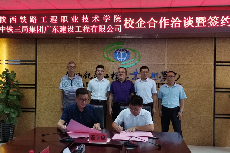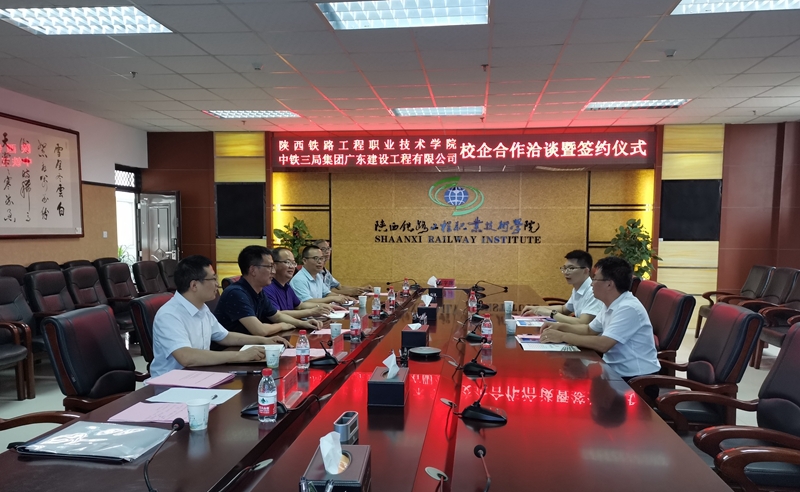 为进一步深化产教融合、校企合作。本着“真诚合作、资源共享、讲究实效、共同发展”的基本原则,充分发挥校企双方资源优势,切实实现教育科研、人才培养与生产有效衔接,将科研成果尽快转化为生产力,努力培养适应行业企业岗位需求的技术技能人才,建立“互惠共利、共同发展”的战略伙伴关系。7月1日上午,中铁三局集团广东建设工程有限公司总工程师王振华、人力资源部副部长朱光福一行在学校高新校区,与学校副校长蒋平江,校企合作处、高铁工程学院相关负责人进行校企合作洽谈,双方签署了2项校企合作协议。会议由校企合作处处长王庆东主持。