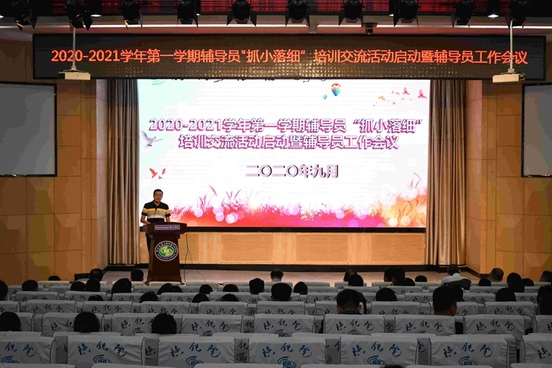 9月23日下午,陕铁院2020-2021学年第一学期辅导员“抓小落细”培训交流活动启动暨辅导员工作会议在高新校区博爱厅召开。校党委副书记郑毅刚出席,就业处、安保处、学生处等部门负责人,各二级学院党总支书记、学工办主任、全校辅导员参加。
