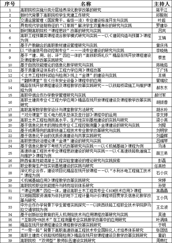 近日,陕西省职业技术教育学会下发《关于公布2020年度国家骨干专业和省一流专业建设标准研制课题、专项课题及教育科研规划课题结题验收结果的通知》(陕职学〔2020〕59号),学校39项课题全部通过结题验收。