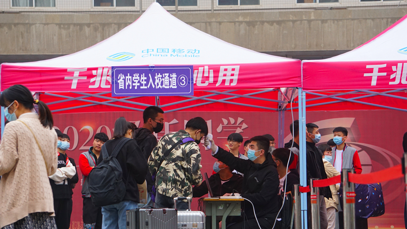 今年受新冠疫情影响,开学日期整整延后了一个月,为了防止人员聚集,做好疫情防护,学校疫情防控工作领导小组制定了适应疫情防控新形势需要的新生报到工作方案,设立了专门的核查和测温点,每一位入校的新生都要佩戴口罩,提供录取通知书和健康通行码,检验合格后再测温进入校园。学校以科学优化的流程严把校园安全关,入校的新生们自觉进行排队、测温和身份核验,现场秩序井然。