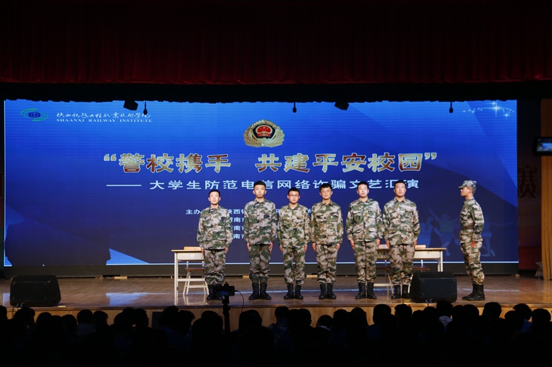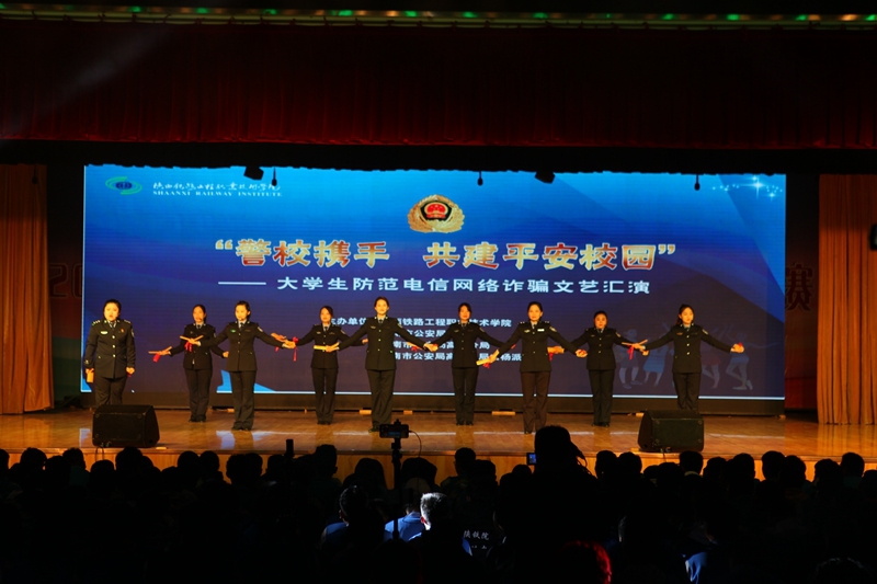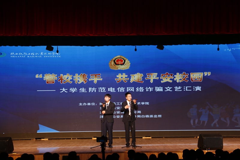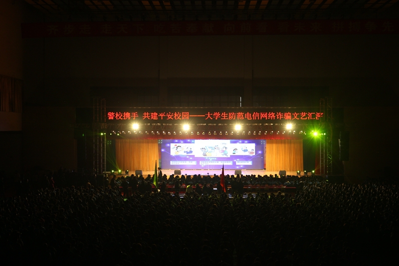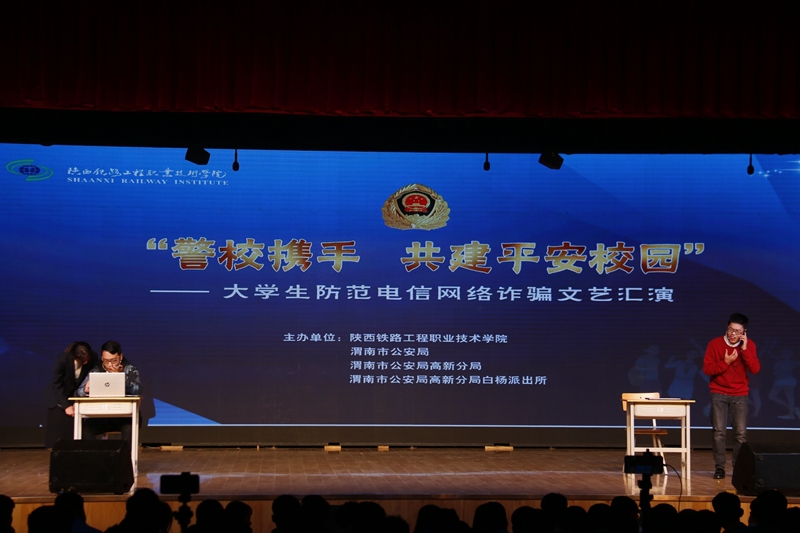 近年来,电信网络诈骗案件高发频发,特别是针对在校师生的电信网络诈骗严重侵害了师生权益,损害了师生利益,影响了校园安全稳定。为了普及防范电信网络诈骗知识,提升师生防范电信网络诈骗的意识和技能,有效遏制电信网络诈骗案件的高发态势,确保师生的财产和生命安全,10月29日晚,学校携手渭南市公安局、渭南市公安局高新分局、渭南市公安局高新分局白杨派出所在高新校区文体中心共同举办“警校携手 共建平安校园——大学生防范电信网络诈骗”文艺汇演。