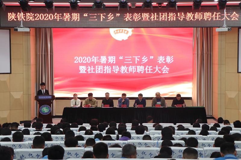 11月5日下午陕铁院在高新校区博爱厅召开了2020年暑期“三下乡”表彰暨社团指导教师聘任大会,会上对6个实践团队,五篇社会实践调查报告,29名先进个人,12名优秀指导教师,1个优秀组织单位进行了表彰。学校副校长贺建锋出席了会议,各学院党总支书记、团总支书记,教师代表、学生代表等600多人参加了会议。
