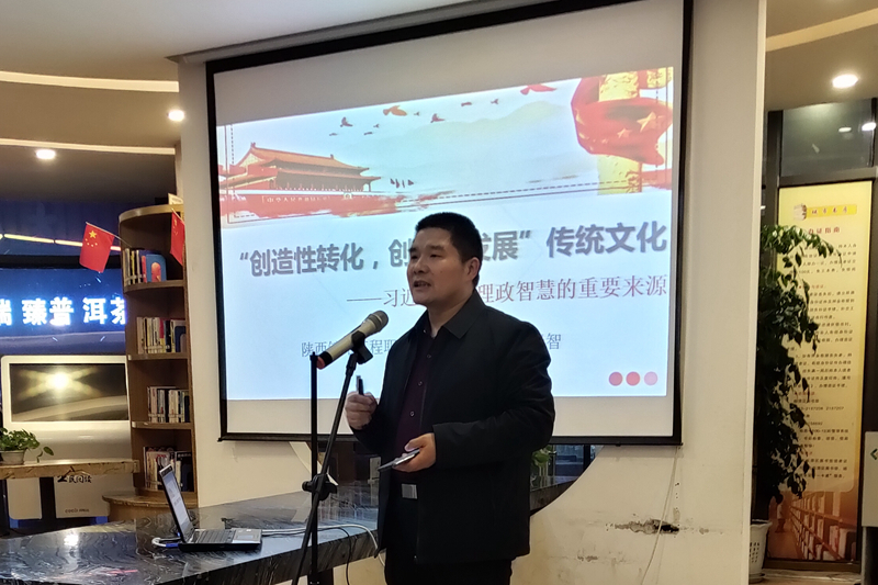 会上,李崇智结合自己担任陕铁院传统文化研究中心主任的工作实际,分享了《“创造性转化,创新性发展”传统文化 —习近平谈治国理政智慧的重要来源》,主要从三个方面谈了习近平谈治国理政对优秀传统文化的吸收和运用:一是在传统文化中寻找中华民族的现代化道路,二是汲取传统文化中的价值力量,三是用传统文化提振干部群众精神、凝聚建设社会主义的强大力量。发言逻辑严密,论述清晰,较好地展示了学习成果,受到了广大书友和渭南市委宣传部的一致好评。