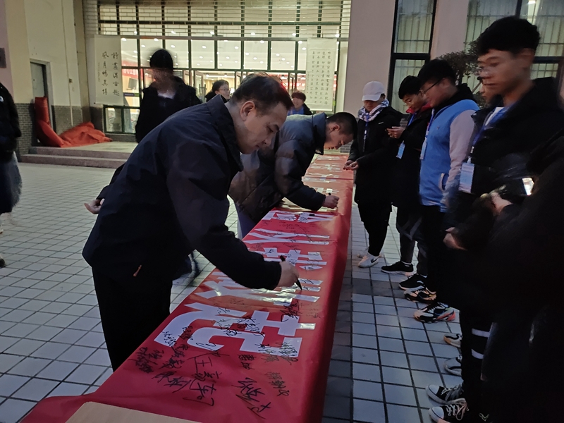 启动仪式结束后,全体与会人员在陕铁院“美好‘食’光”主题横幅郑重签名,承诺从珍惜一粒米一餐饭开始,与文明行动握手,向浪费陋习告别,让勤俭节约在校园蔚然成风,美好“食”光你我共创。(陈静/文 学生记者 张武阳/图)
