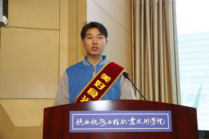 志愿者代表盾构3182班姜东旭同学作表态发言