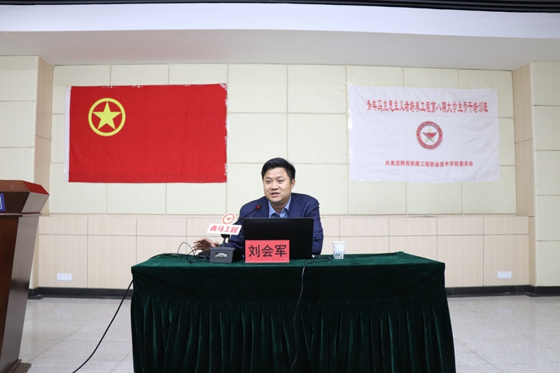 教育部高等学校思想政治理论课教学指导委员会委员、马克思主义学院院长李新萍教授为“青马工程”第八期大学生骨干培训班授旗,团委陈莎莎对此次培训工作做了安排说明,机械3193班李佳乐同学也代表全体学员表达了珍惜机会、努力提升的信心和决心。