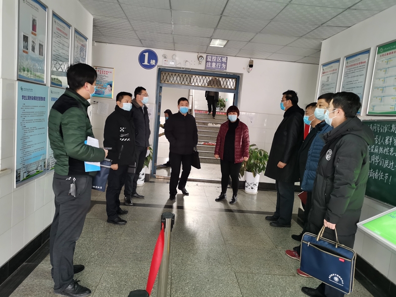 1月14日上午,临渭区驻区高校疫情防控工作指导组一行10余人来陕铁院检查指导疫情防控工作。学校副校长贺建锋、党委(校长)办公室、后勤保障处、安全保卫处、学生处、餐饮中心等部门负责人陪同检查。