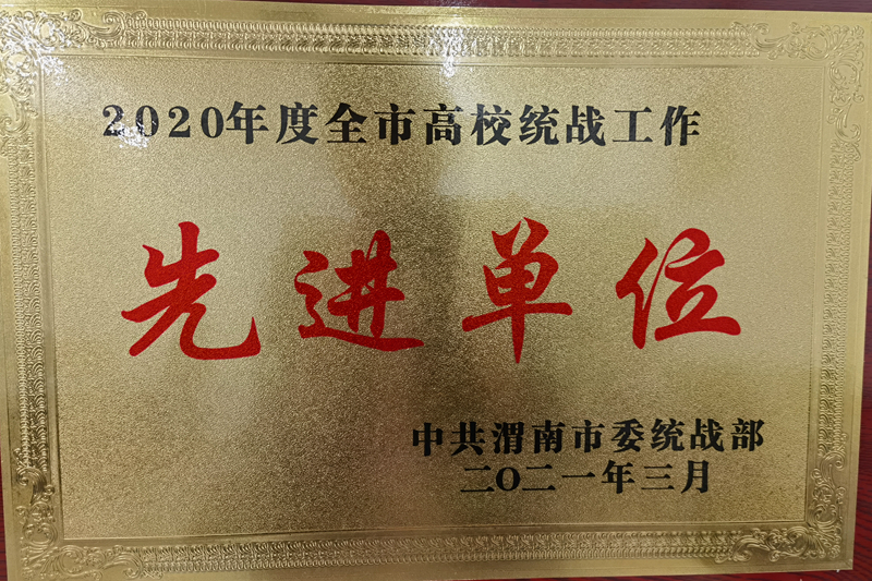 3月16日,渭南市召开了统战部长会议,对2020年全市统战工作先进单位进行了表彰,学校获评“统战工作先进单位”。至此,我校已连续3年获此荣誉。