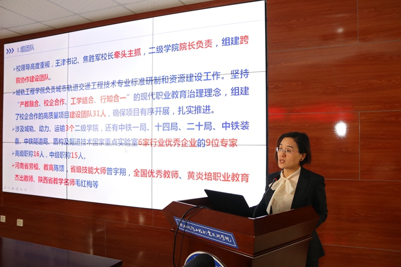 当日下午,城轨工程学院院长毛红梅、道桥与建筑学院院长齐红军分别作为城轨、道桥工程技术专业虚拟仿真教学资源开发项目负责人从团队组建、培训调研、标准研发、方案制定、培训手册与脚本开发、场地建设方案规划等方面汇报介绍了项目当前建设进展与未来工作计划。