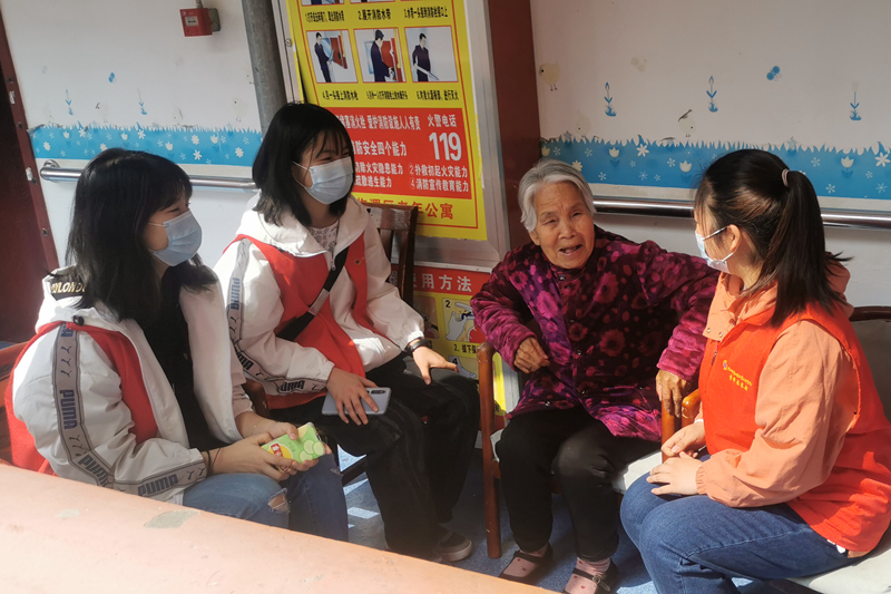 志愿者陪敬老院老人们聊天
