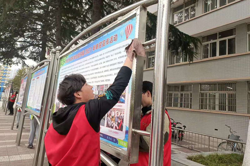 志愿者清洁学校宣传栏
