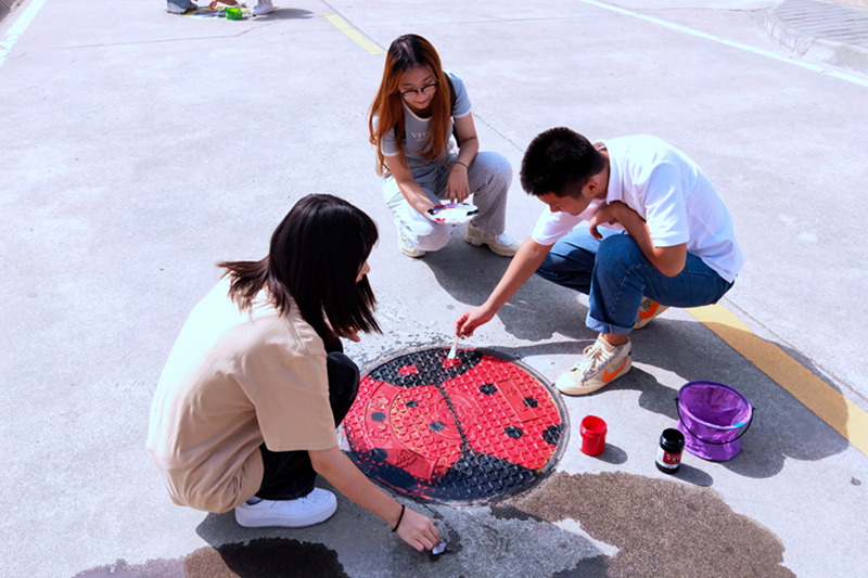 装饰专业学生利用专业特长开展校园彩绘活动,同学们齐心协力,用画笔和颜料将校园内一个个灰色井盖变成了一件件充满创意的艺术品,不由得让人眼前一亮。漫步在校园内,原本单调的马路上出现了各种生动的卡通形象,一个个栩栩如生的彩绘作品成为了校园内一道亮丽的风景线,精彩创意点亮了整个校园,让陕铁院增添了青春色彩。