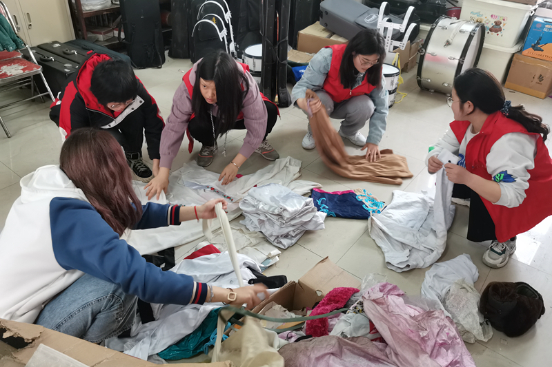 志愿者助力艺术团服装室整理工作